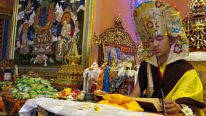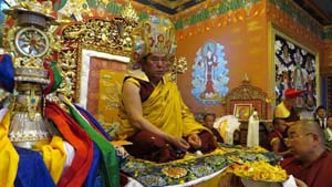 Wir haben außerdem die große Ehre, die Einsetzungsfeier eines der acht großen Meister der buddhistischen Siddhi-Linie des 12. Jahrhunderts anzukündigen, die in Tibet als Palchen Ga Lotsawa Shon-nu Pal wohlbekannt waren. Geboren in Mi-nyag im Osten Tibets entwickelte er den Wunsch, in diesem Leben Siddhis zu erlangen. Um die Lehren dazu zu empfangen, trat er die schwierige und gefährliche Reise zum erhabenen Land Indien an, wo er von großen buddhistischen Meistern wie dem Tsami Sange Dragpa der Magadha-Region in Bodh Gaya, von Abhayakara, Vageshwari und vielen weiteren unterwiesen wurde.